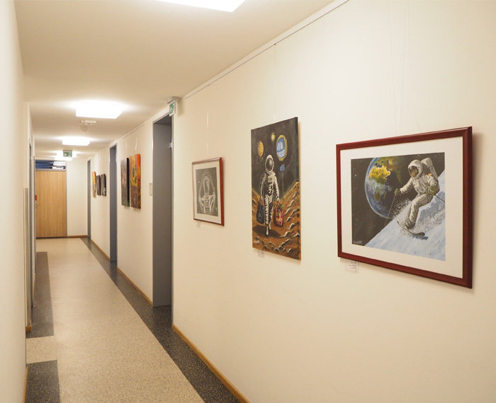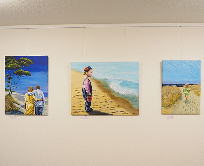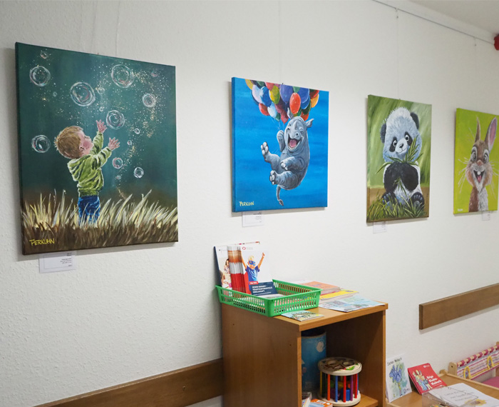 Die oberen Flure des Amtsgebäudes erhalten frischen künstlerischen Glanz durch eine Auswahl von über vierzig modernen Acrylgemälden des Pampower Künstlers René Perkuhn. Viele seiner Bilder erzählen kleine Geschichten – mal kraftvoll, mal leise – und verbinden realistische Elemente mit einer modernen, farbintensiven Bildsprache. Besonders charakteristisch sind die sorgfältig ausgearbeiteten Details und die lebendige Wirkung seiner Acryl-Mischtechniken. Seine Gemälde sind echte Unikate und können auf Wunsch auch erworben werden.