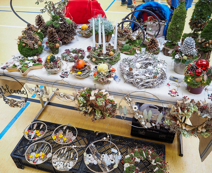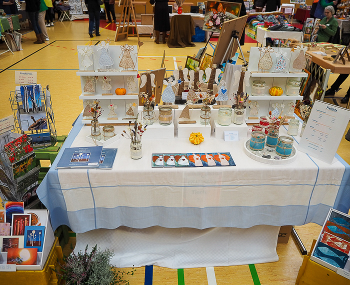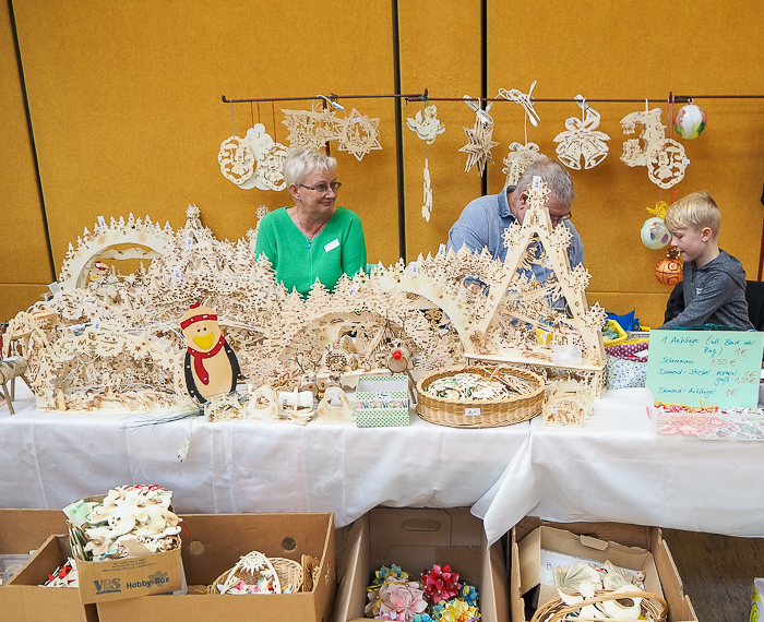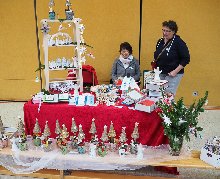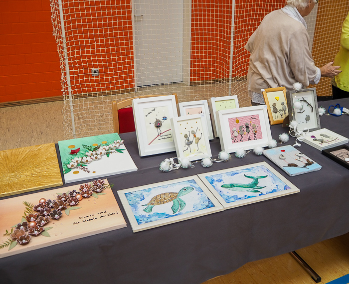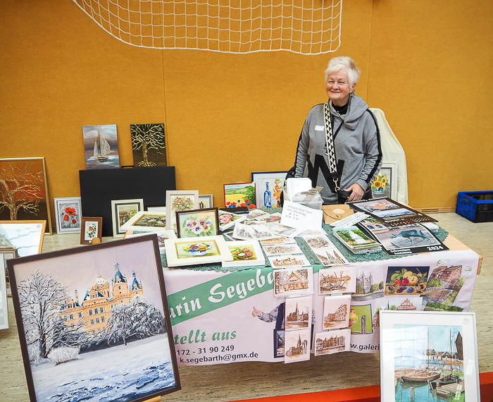 Für die mehr als 1000 interessierten Besucher - egal ob groß oder klein gab es viel zu entdecken: Aquarell-, Öl- und Acrylmalereien, feines Porzellan, Filz- und Lederarbeiten, handgemachte Seifen, Häkel-, Strick- und Näharbeiten, hoch- und plattdeutsche Bücher, Patchworkarbeiten, aus Holz gedrechseltes und geschnitztes, Gießhandwerk, hochwertige Fotoarbeiten, Kalender für das kommende Jahr, Grußkarten, Schmuck, Lampen, Fossilien, Geschenkideen für Weihnachten und viele Leckereien. Der Geschenkeeinkauf für Weihnachten wurde gleich vor Ort