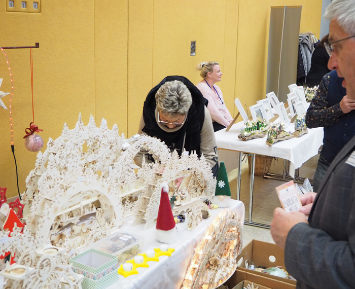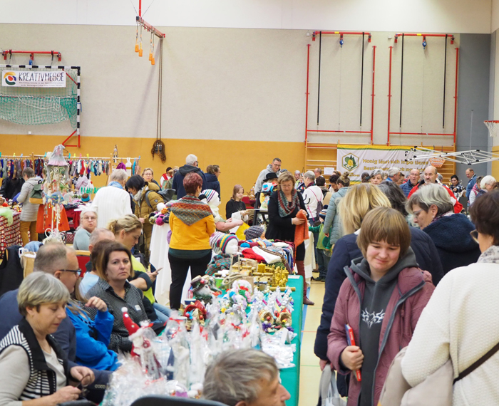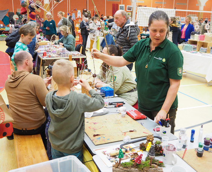 Um 11 Uhr konnte die Messe pünktlich eröffnet werden. Die Veranstaltung zog trotz des nasskalten Novembertags noch mehr Besucher als in den Jahren zuvor an. Im Foyer wurden die Gäste von dem Falkner Herrn Eggert mit seinen treuen Begleitern begrüßt. Die Vielfalt der angebotenen Produkte war auch in diesem Jahr wieder sehr beeindruckend. Die Besucher konnten nicht nur stöbern, sondern auch schöne Mitbringsel wie Handarbeitsartikel aus Wolle, Stoff und Plüsch, Upcycling Taschen, Schmuck, Weihnachtsdeko, Holz-, Beton-, Raysin und Lederarbeiten, Bücher, Honig, Malereien und vieles mehr direkt vor Ort kaufen. Bei den Mitmachangeboten konnte genagelt, geschraubt und gehämmert werden. Der Naturpark Sternberger Seenland e.V. hatte nicht nur Nistkästen zum selbst bauen dabei, sondern auch Spinnennetze zum Basteln sorgten für spannende Momente für Groß und Klein. Die kleinen und zarten Hände konnten kleine Perlenengel basteln oder die Tannenbaumkugel hübsch verzieren. So hatten Mama, Papa oder Oma und Opa gemeinsam mit ihren Kindern Spaß.