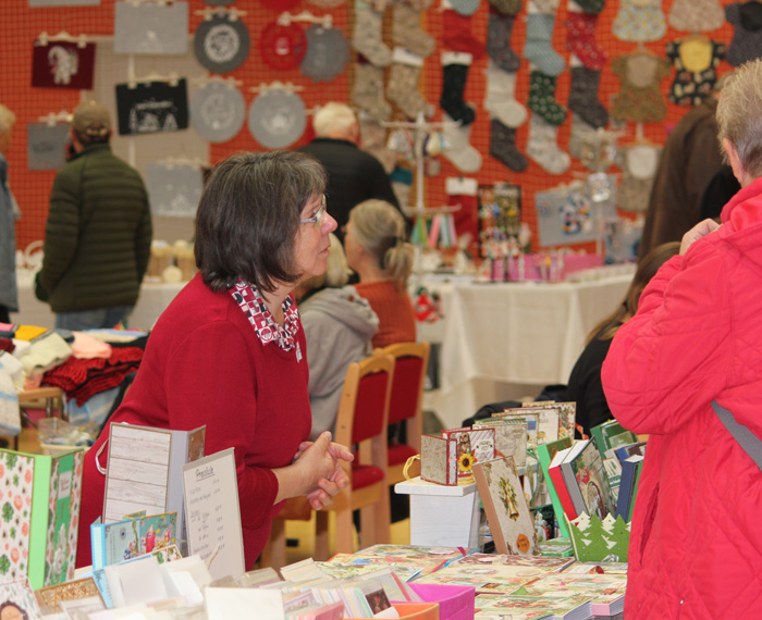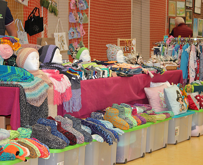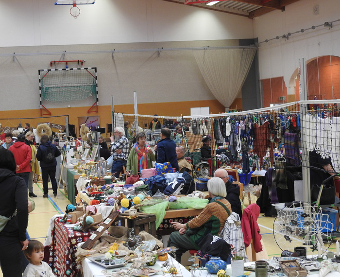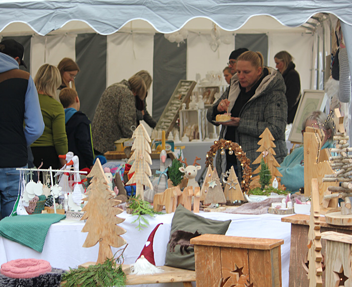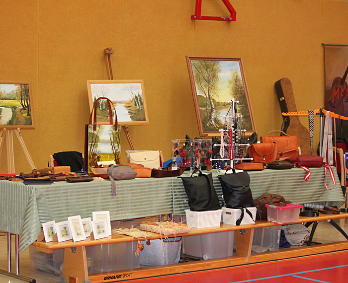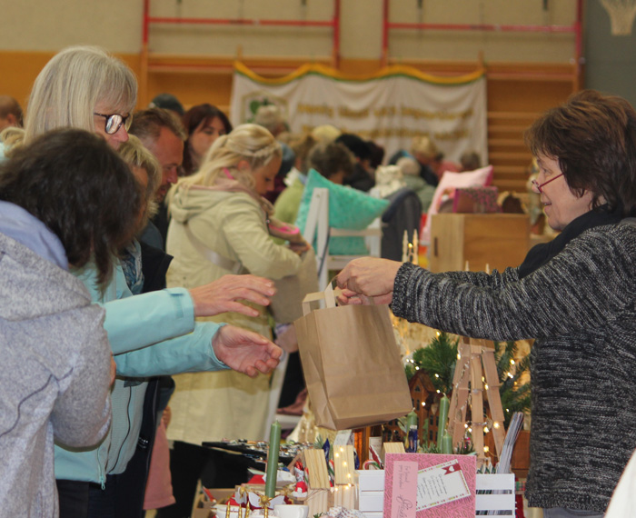Innerhalb von 2 Stunden wurden Tische gestellt, Stühle gerückt und die gebastelten, gehäkelten, gestrickten, gemalten oder kreativ hergestellten Sachen präsentiert. Die Besucher konnten es kaum erwarten. Bereits vor der offiziellen Eröffnung standen die ersten Besucher vor der Tür. Da schon etwas früher alles an seinem Platz war wollten wir die Gäste auch nicht länger warten lassen. Wieder begann ein Tag voller Emotionen und Erlebnissen und auch interessante Gespräche kamen nicht zu kurz. Ein bunter Mix aus Handarbeitsartikeln aus Wolle, Stoff und Plüsch, Upcycling Taschen, Ledertaschen, Schmuck, Adventsdeko, Holz-, Beton-, Raysin und Lederarbeiten, Bücher, Honig und selbst gemalte Bilder konnten vor Ort bewundert werden und bei Interesse auch erworben werden. Das Mitmachangebot vom Naturpark Sternberger Seenland e. V. fand regen Zuspruch. Wer wollte, konnte selbst Hand anlegen und Nistkästen zusammenbauen.