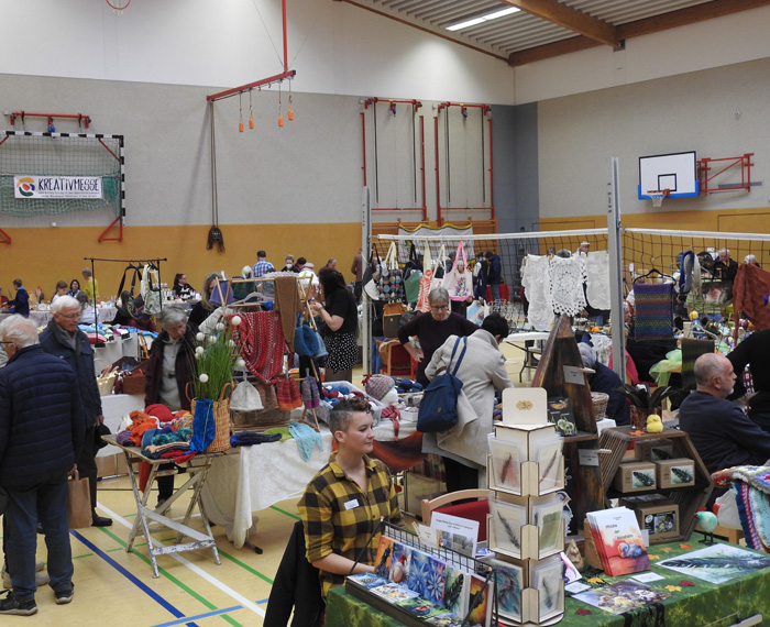 Nun ist schon wieder alles vorbei. Wochenlange Vorbereitungen, viele Anfragen und sehr viele gute und kreative Ideen waren wieder die Highlights unserer Messe in Leezen. Am Samstag, den 08.11.2025 war es wieder soweit. Die Turnhalle in Leezen, wo sonst die Handballer aus Leezen ihre Tore werfen, wurde für einen Tag wieder in eine Messehalle verwandelt. Bereits zum 8. Mal trafen sich Hobbykünstler – meist aus der Region – um die Ergebnisse ihres Hobbys mit den Besuchern der Messe zu teilen. 55 Aussteller an 94 Tischen zeigten wieder ihre tollen Produkte. Die Ideen der Hobbykünstler kennen dabei keine Grenzen. Wir denken immer uns kann bei der Messe nichts mehr überraschen, aber wir werden immer wieder eines Besseren „belehrt“. Denn auch dieses Mal waren wieder einige neue Aussteller dabei. Sie waren eine echte Bereicherung für die Messe und es gab einen regen Austausch zwischen den „neuen“ und „alten“ Ausstellern. Leider konnten wir nicht alle Anmeldungen berücksichtigen. Wir hatten noch 21 angemeldete Aussteller auf der Warteliste und wir hätten mindestens noch 30 weitere Tische belegen können.