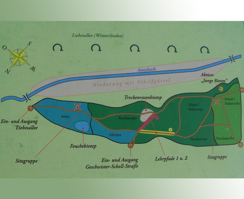 Die Lehrpfade informieren über die Entwicklungsgeschichte der Pflanzen von den Moosen, Farnen bis hin zu den ersten Nadelgehölzen (den Gymnospermaen) vor den Eiszeiten und den Laubgehölzen (Angiospermaen) nach den Eiszeiten.