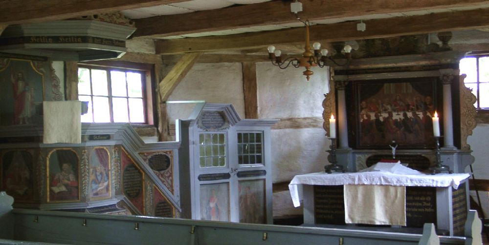 In einem Kirchenvisitationsprotokoll aus dem Jahr 1534 wurde die kleine Kirche schon erwähnt. Wegen Geldmangel sollte 1780 die baufällige Kirche statt renoviert, abgerissen werden.